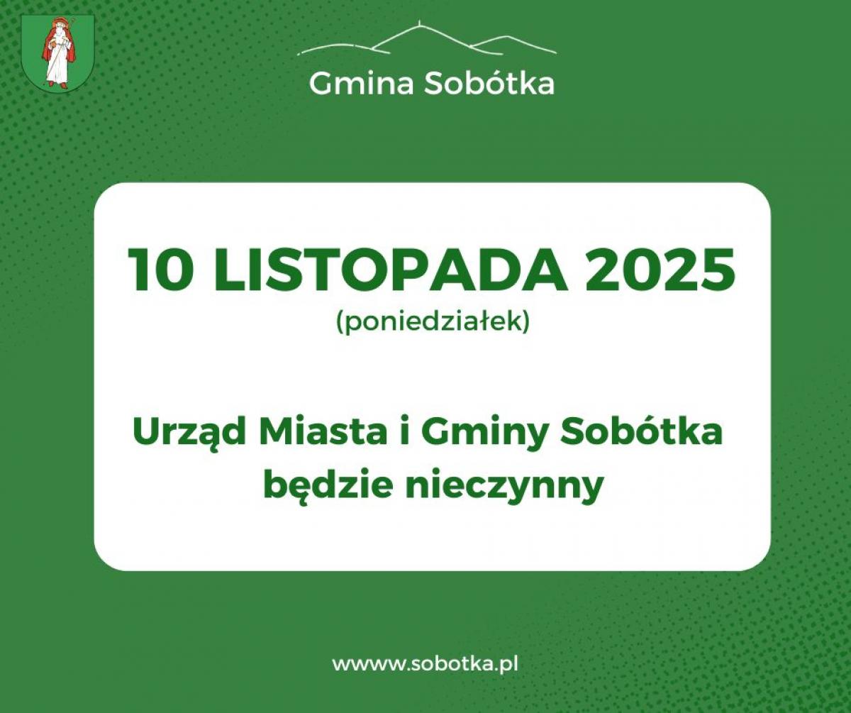 10 listopada 2025r. Urząd Miasta i Gminy Sobótka będzie nieczynny.