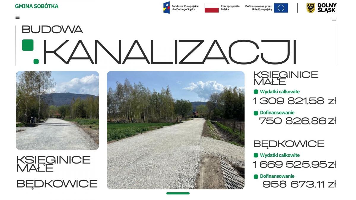 w Księginicach Małych ul. Zbożowa” . Oba zadania zostały dofinansowane ze środków zewnętrznych w ramach Programu Fundusze Europejskie dla Dolnego Śląska 2021–2027, działanie 2.6 Rozwój lokalny – strategie ZIT.