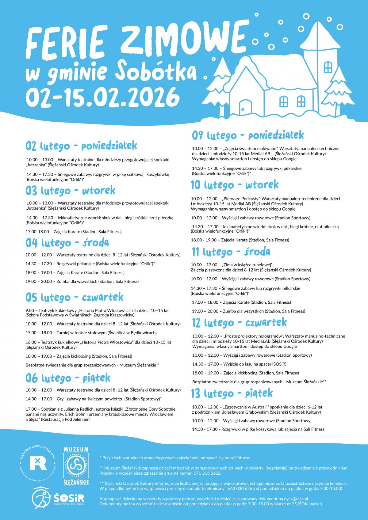 10.00 – 12.00 – warsztaty teatralne dla dzieci 8–12 lat (Ślężański Ośrodek Kultury)