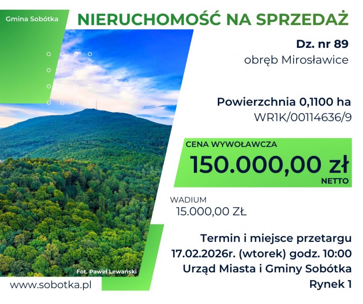 17.02.2026 r. o godz. 10:00 w Urzędzie Miasta i Gminy Sobótka, Rynek 1, sala nr 11.