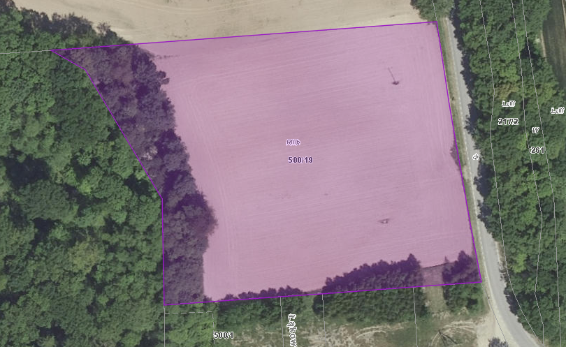 Nieruchomość gruntowa niezabudowana oznaczona wg ewidencji gruntów jako działka numer 500/19, obręb Księginice Małe, o pow. 1,2200 ha, oznaczenie klasy gruntów w ewidencji gruntów jako grunty orne – RIIIb; KW WR1K/00095697/4; MPZP – teren zabudowy letniskowej –MNL2, las lub zadrzewienia – ZL22.